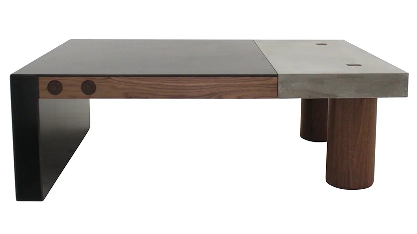 The Paradigm Low Table seamlessly integrates three elemental materials, concrete, steel and wood. The combination of cast concrete with hand-turned walnut legs and thru-tenon joinery married to hand-blackened steel with an oil and wax finish make for a simple yet elegant surface.